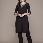 Straight Style Silk Fabric Black Colour Kurta With Bottom