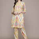 Straight Style Cotton Fabric Yellow Colour Kurta With Bottom