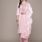 Straight Style Cotton Fabric Mauve Colour Kurta And Bottom With Dupatta