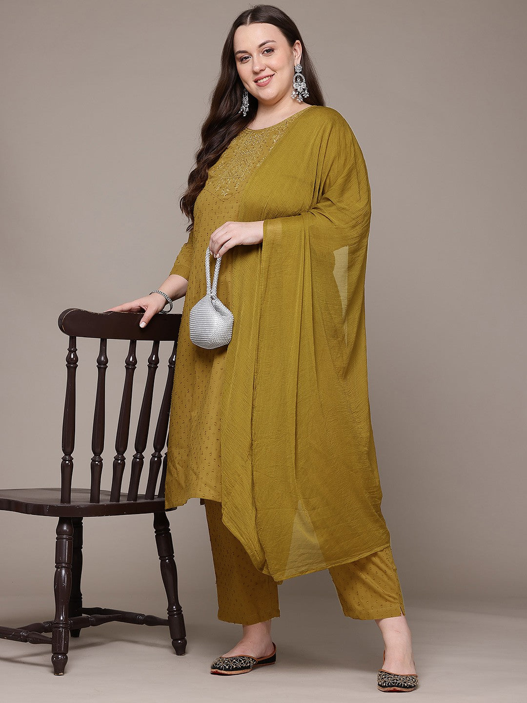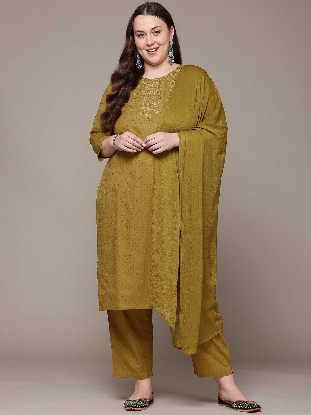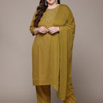 Straight Style Cotton Fabric Mustard Colour Kurta With Bottom And Dupatta