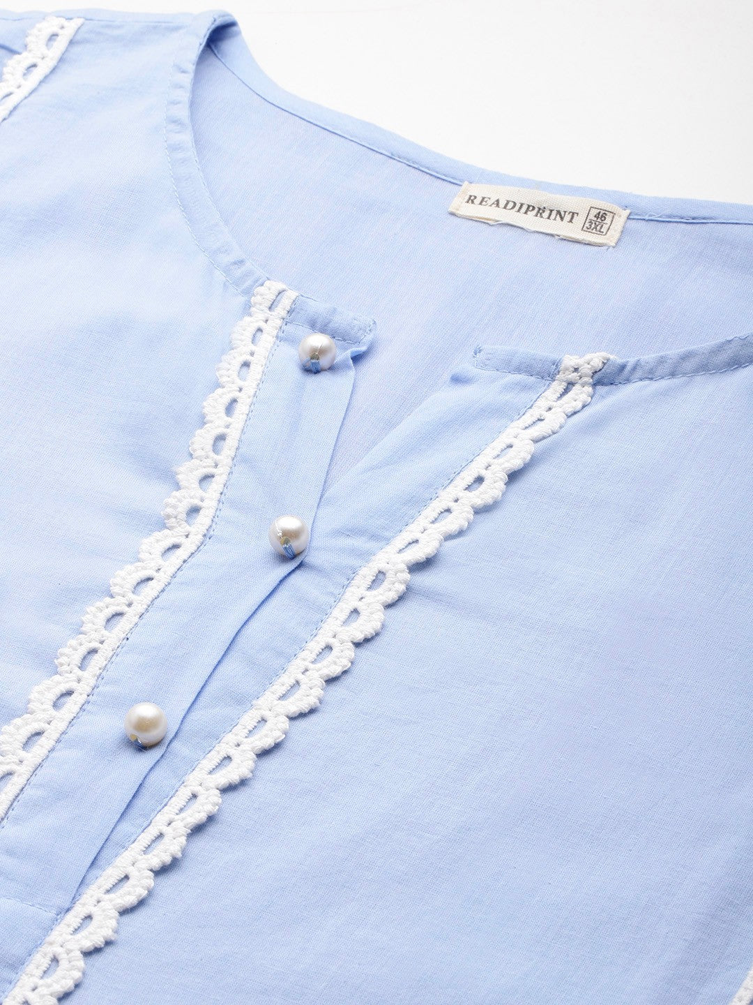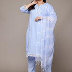 Straight Style Cotton Fabric Blue Colour Kurta With Bottom And Dupatta