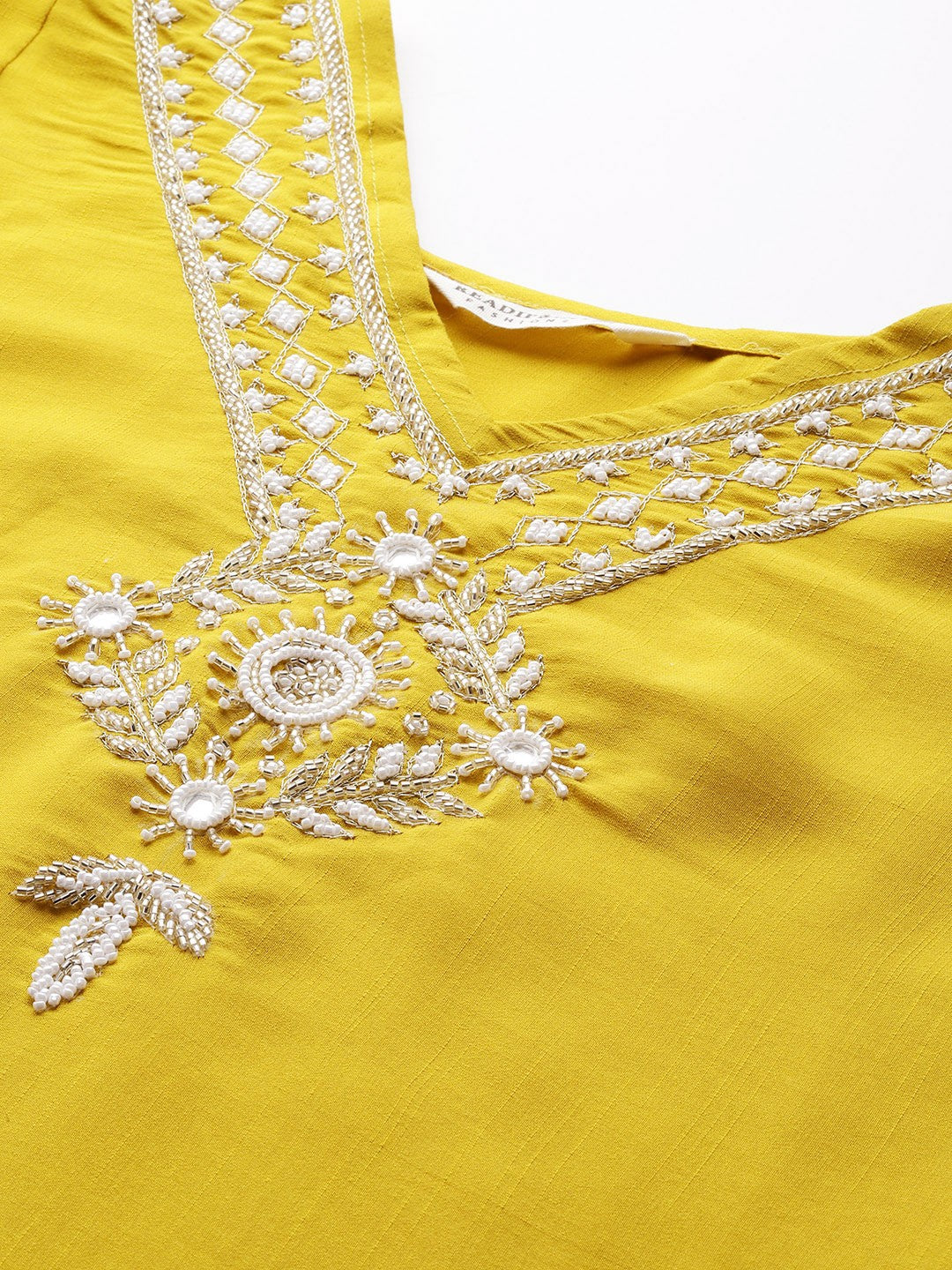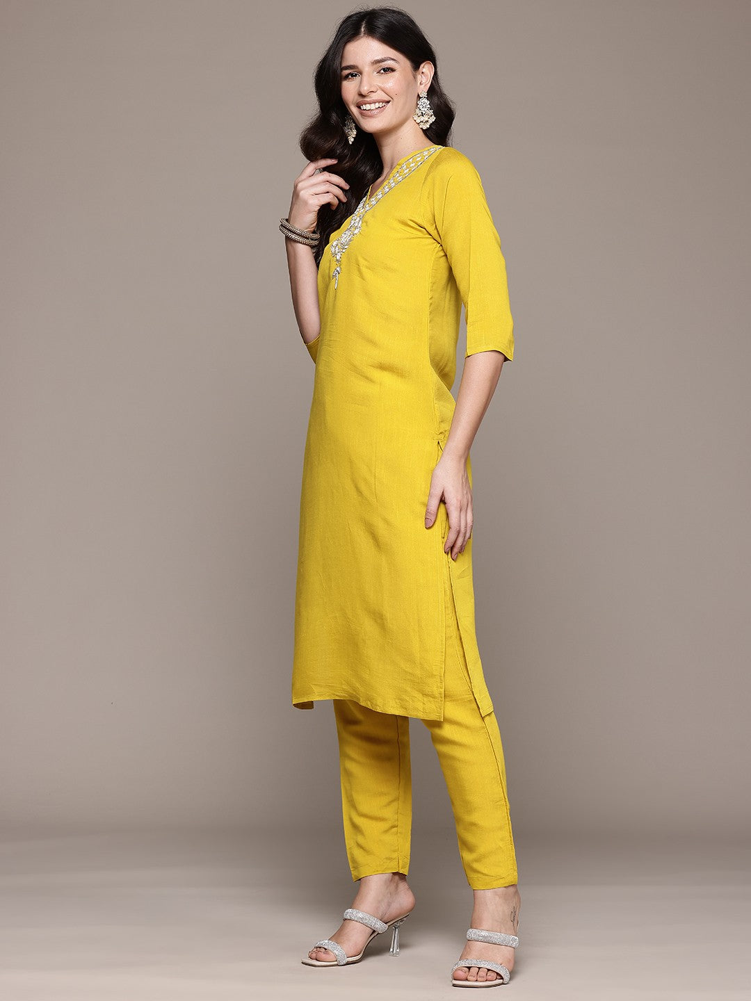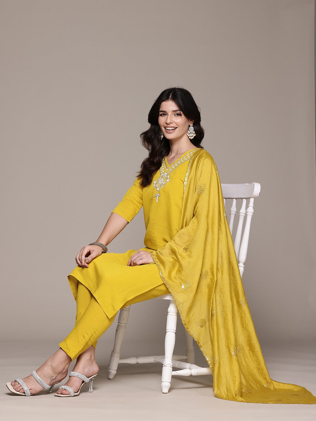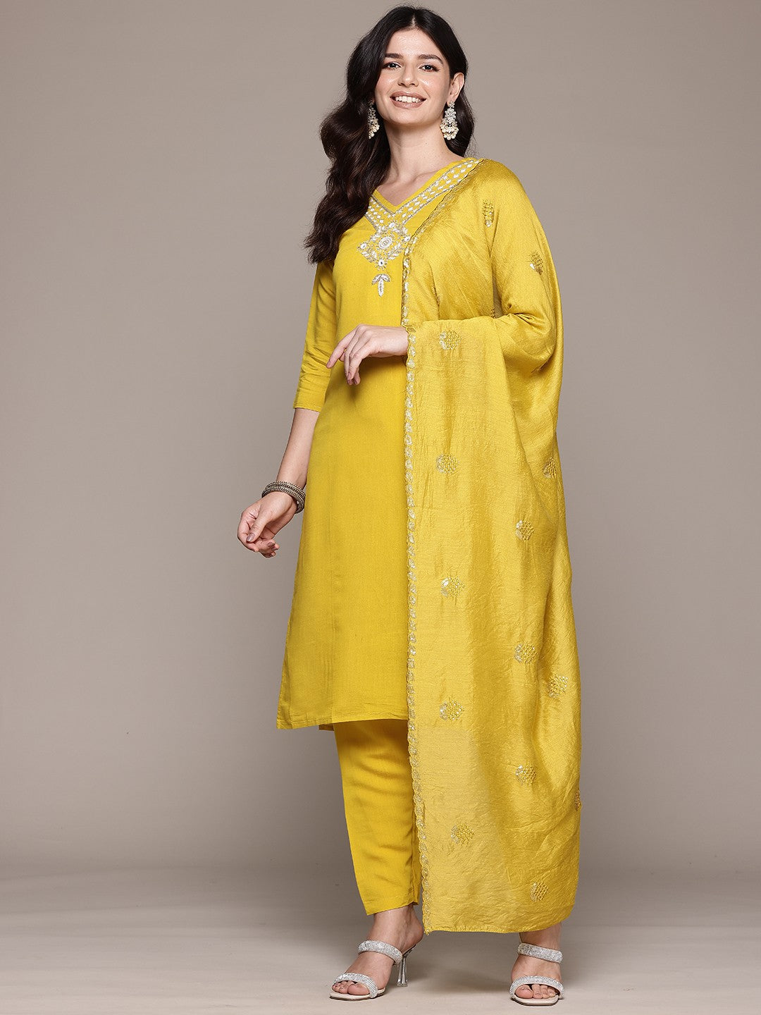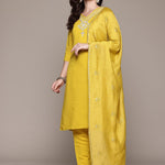 Straight Style Viscose Fabric Mustard Color Kurta And Bottom With Dupatta