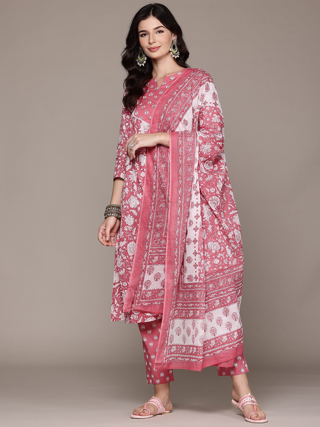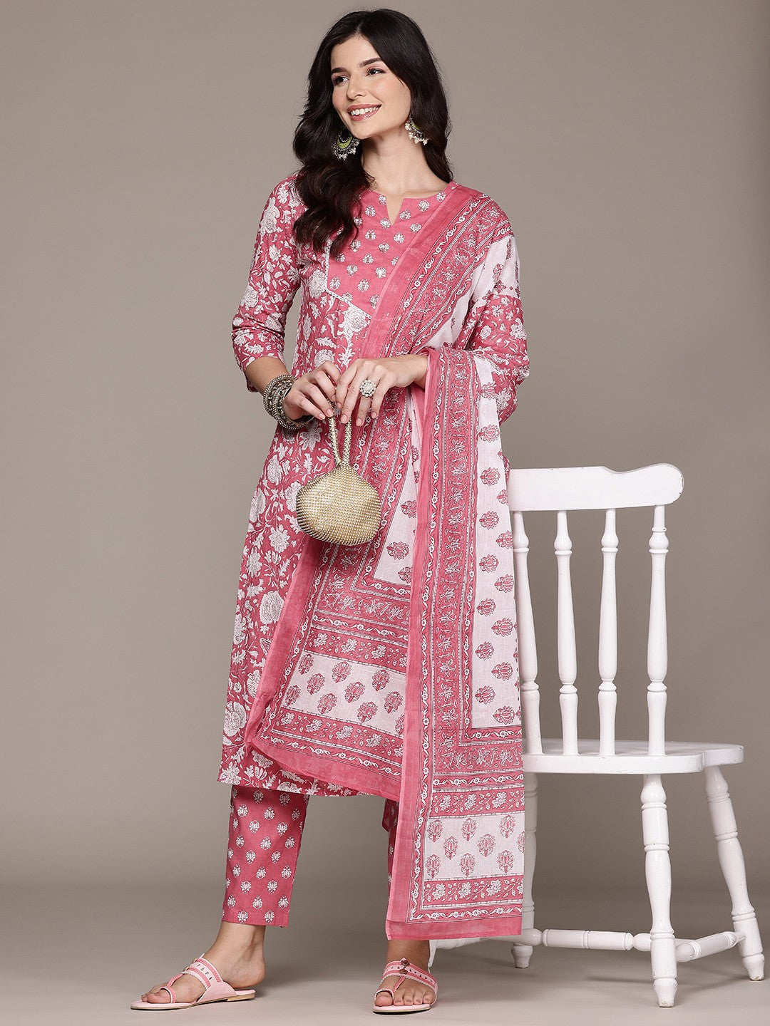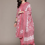 Straight Style Cotton Fabric Peach Color Kurta And Bottom With Dupatta
