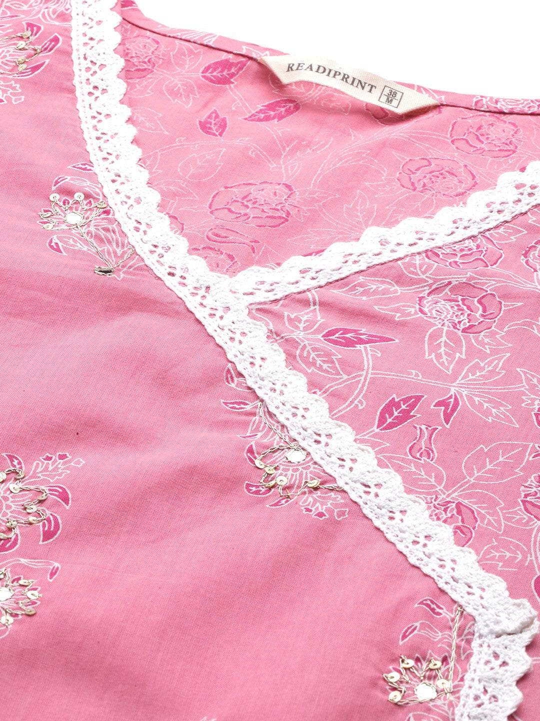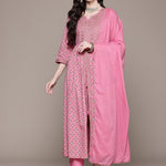 Frock Style Cotton Fabric Mauve Color Kurta With Bottom And Dupatta