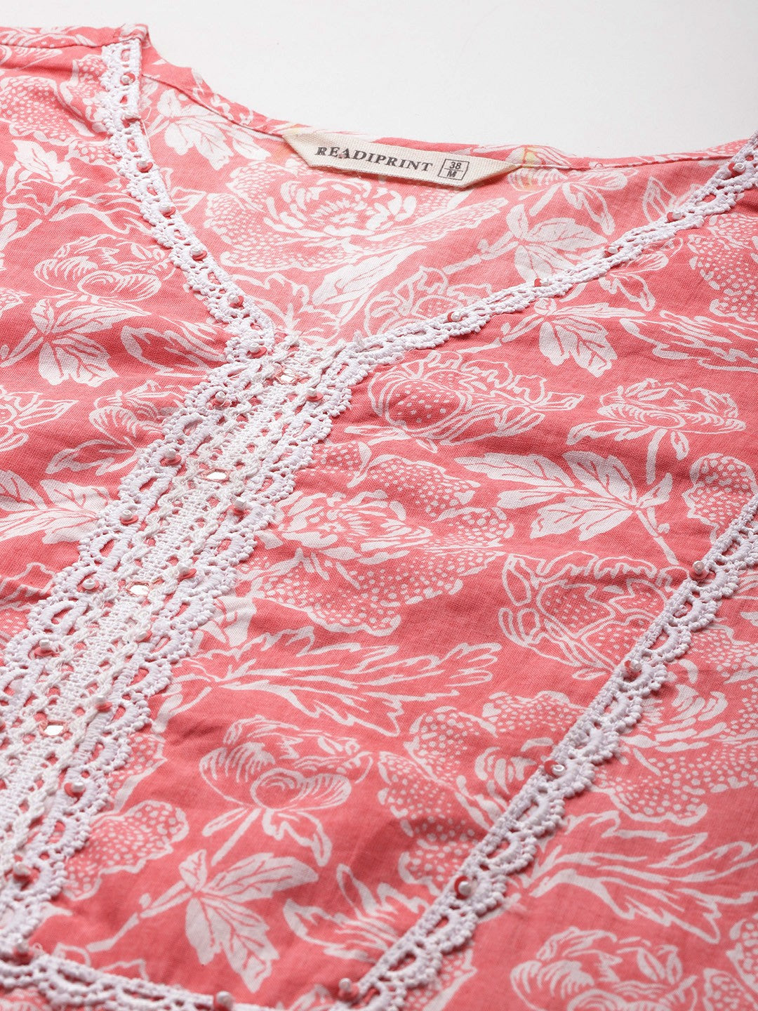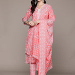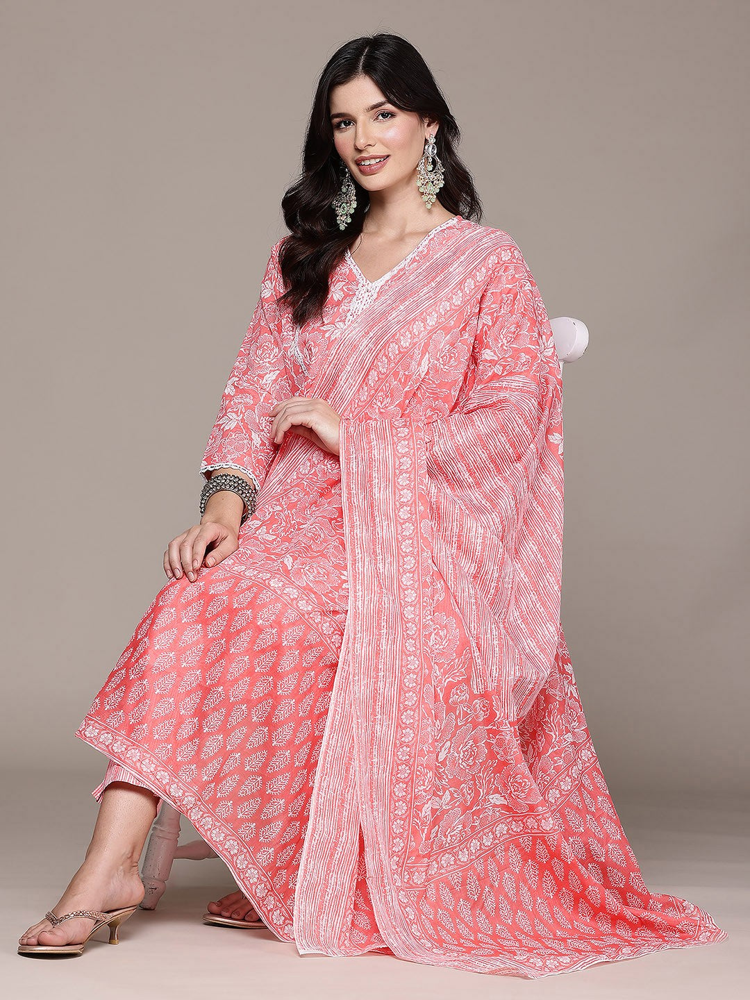 Straight Style Cotton Fabric Peach Color Kurta And Bottom With Dupatta