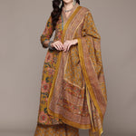 Frock Style Cotton Fabric Mustard Color Kurta And Bottom With Dupatta