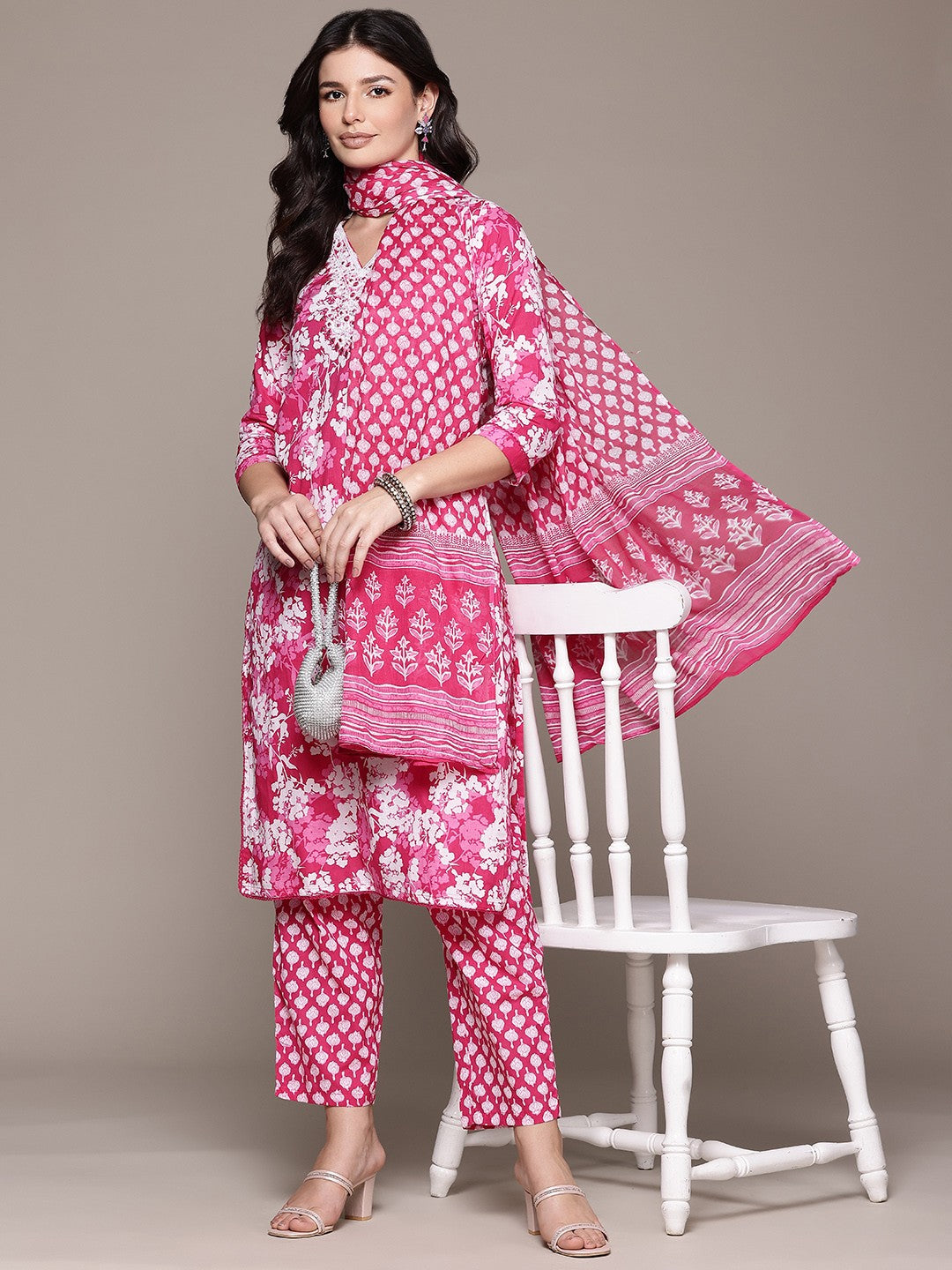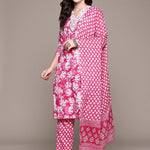 Straight Style Cotton Fabric Magenta Color Kurta And Bottom With Dupatta
