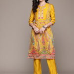 Straight Style Silk Fabric Mustard Color Kurta With Bottom