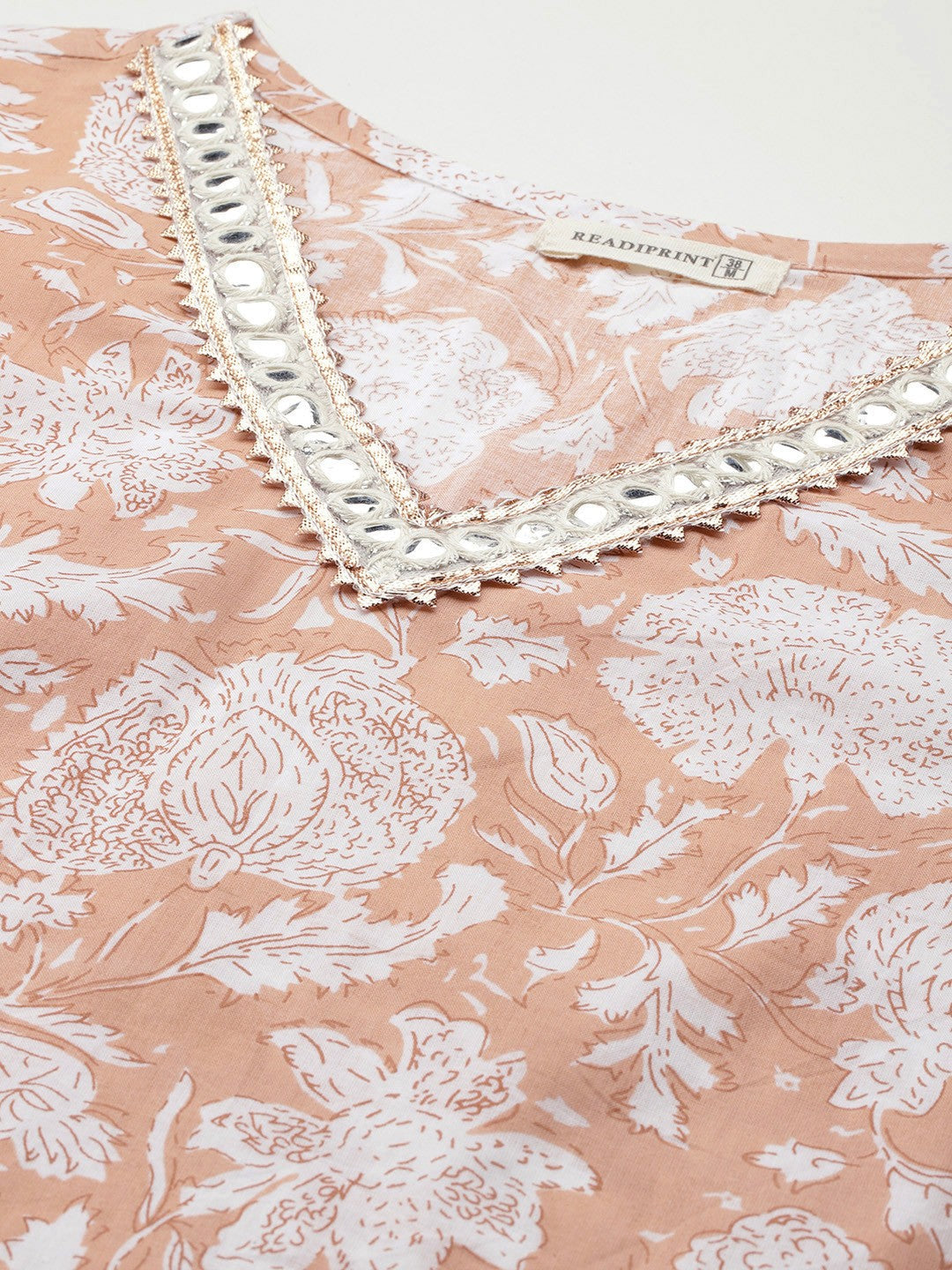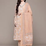Straight Style Cotton Fabric Brown Color Kurta And Bottom With Dupatta