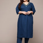 Straight Style Cotton Fabric Navy Blue Color Kurta With Bottom