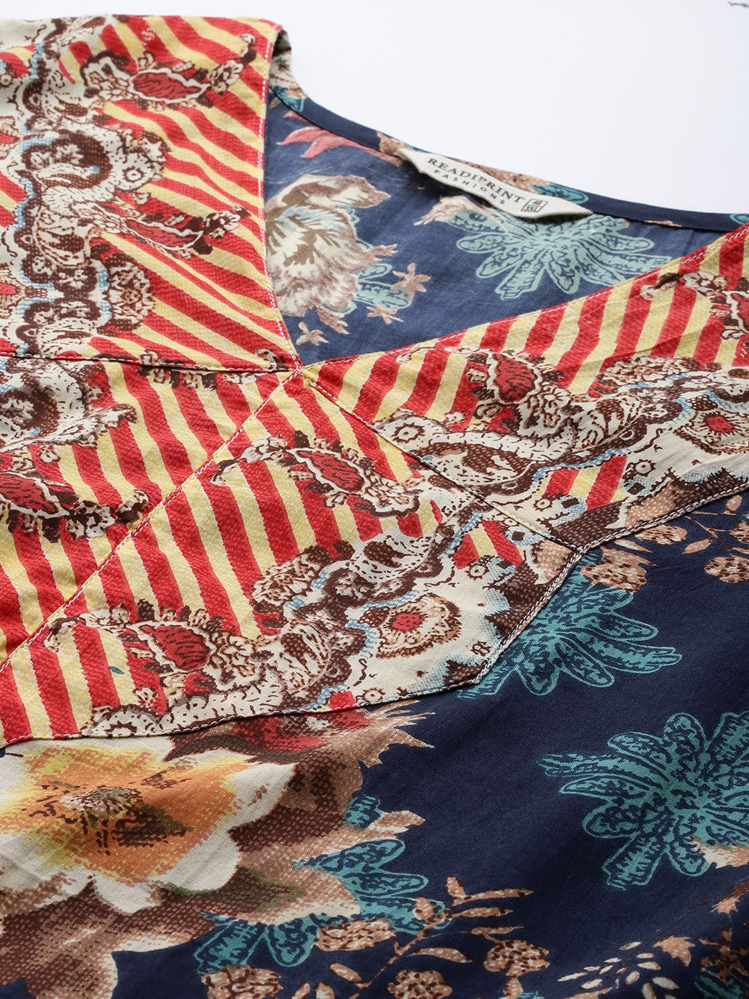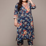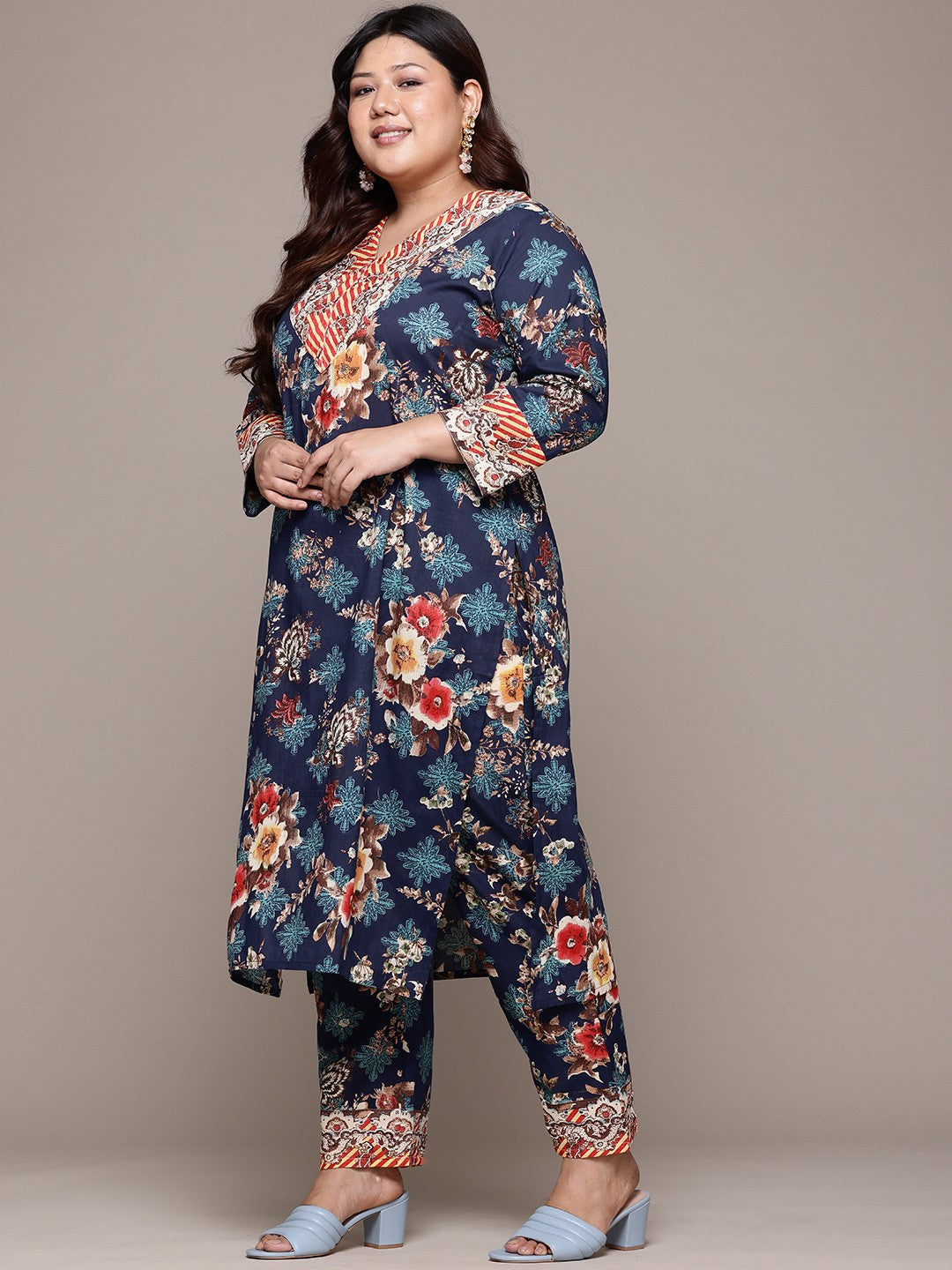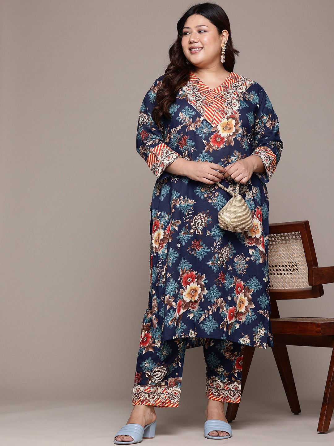 Straight Style Cotton Fabric Navy Blue Color Kurta With Bottom