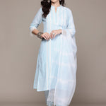 Straight Style Cotton Fabric Blue Color Kurta With Bottom And Dupatta