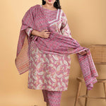Straight Style Cotton Fabric Pink Color Kurta And Bottom With Dupatta