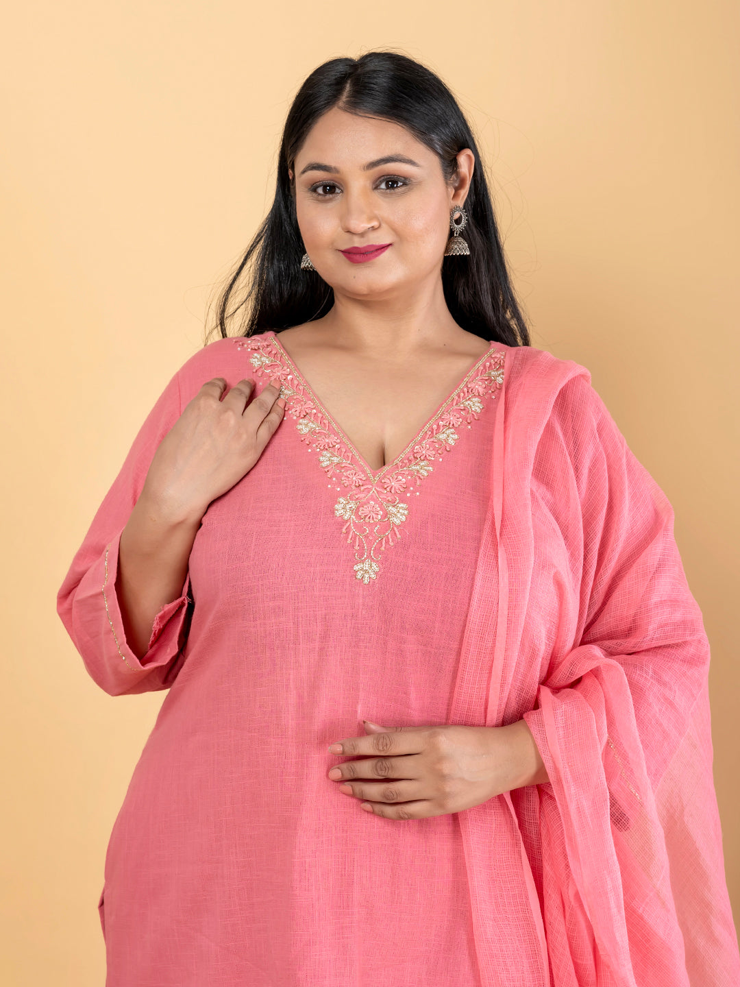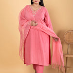 Straight Style Cotton Flex Fabric Peach Color Kurta And Bottom With Dupatta
