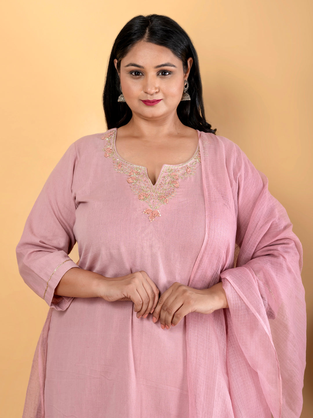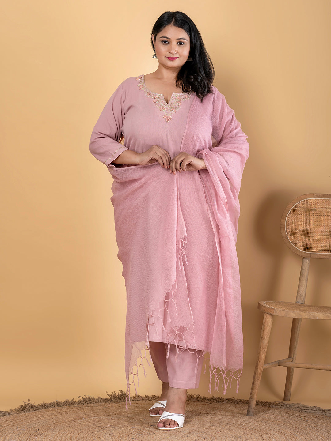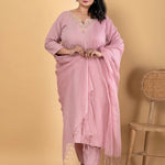 Straight Style Cotton Flex Fabric Mauve Color Kurta And Bottom With Dupatta