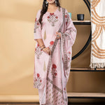Straight Style Kota Doria Fabric Pink Color Kurta And Bottom With Dupatta