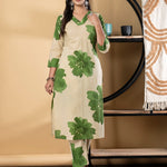 Straight Style Cotton Fabric Green Color Kurta And Bottom
