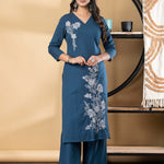 Straight Style Cotton Fabric Teal Color Kurta And Bottom