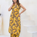 Straight Style Cotton Fabric Yellow Color Kurta And Bottom