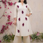 Straight Style Cotton Flex Fabric Off White Color Kurta And Bottom