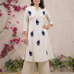 Straight Style Cotton Flex Fabric Off White Color Kurta And Bottom