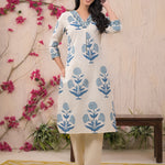 Straight Style Cotton Flex Fabric Blue Color Kurta And Bottom