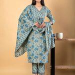 Straight Style Cotton Fabric Blue Color Kurta And Bottom With Dupatta