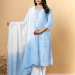 Straight Style Cotton Fabric Blue Color Kurta And Bottom With Dupatta