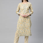 Straight Style Cotton Fabric Cream Color Kurta With Bottom