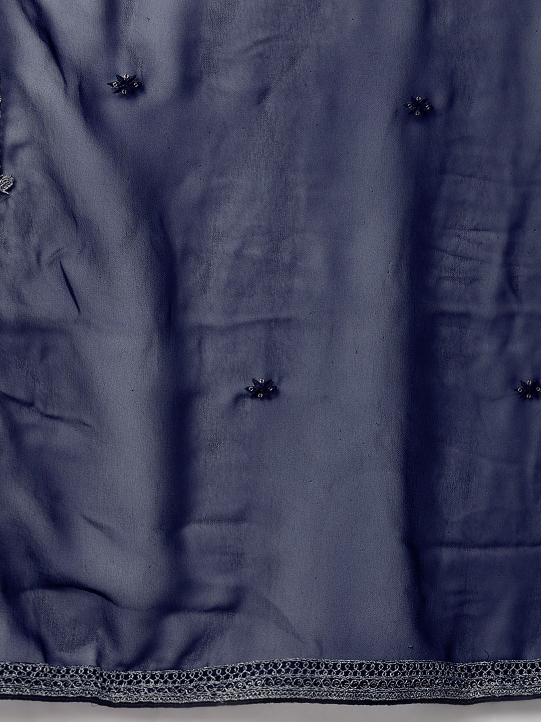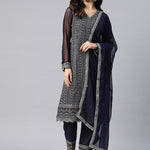 Pakistani Style Georgette Fabric Blue Color Kurti With Bottom And Dupatta