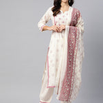 Straight Style Cotton Fabric Cream Color Kurta And Bottom With Dupatta