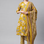 Straight Style Cotton Fabric Mustard Color Kurta And Bottom With Dupatta