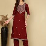 Rayon Embroidered Kurta And Palazzo Set (MAROON)