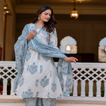 Cotton A-Line Kurta, Palazzo & Dupatta Set