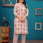 Cotton Printed Straight Kurta set (Orange)