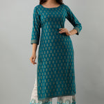 Printed Straight Calf Length 3/4 Sleeves Round Neck Rayon Kurta Set (Preorder)