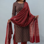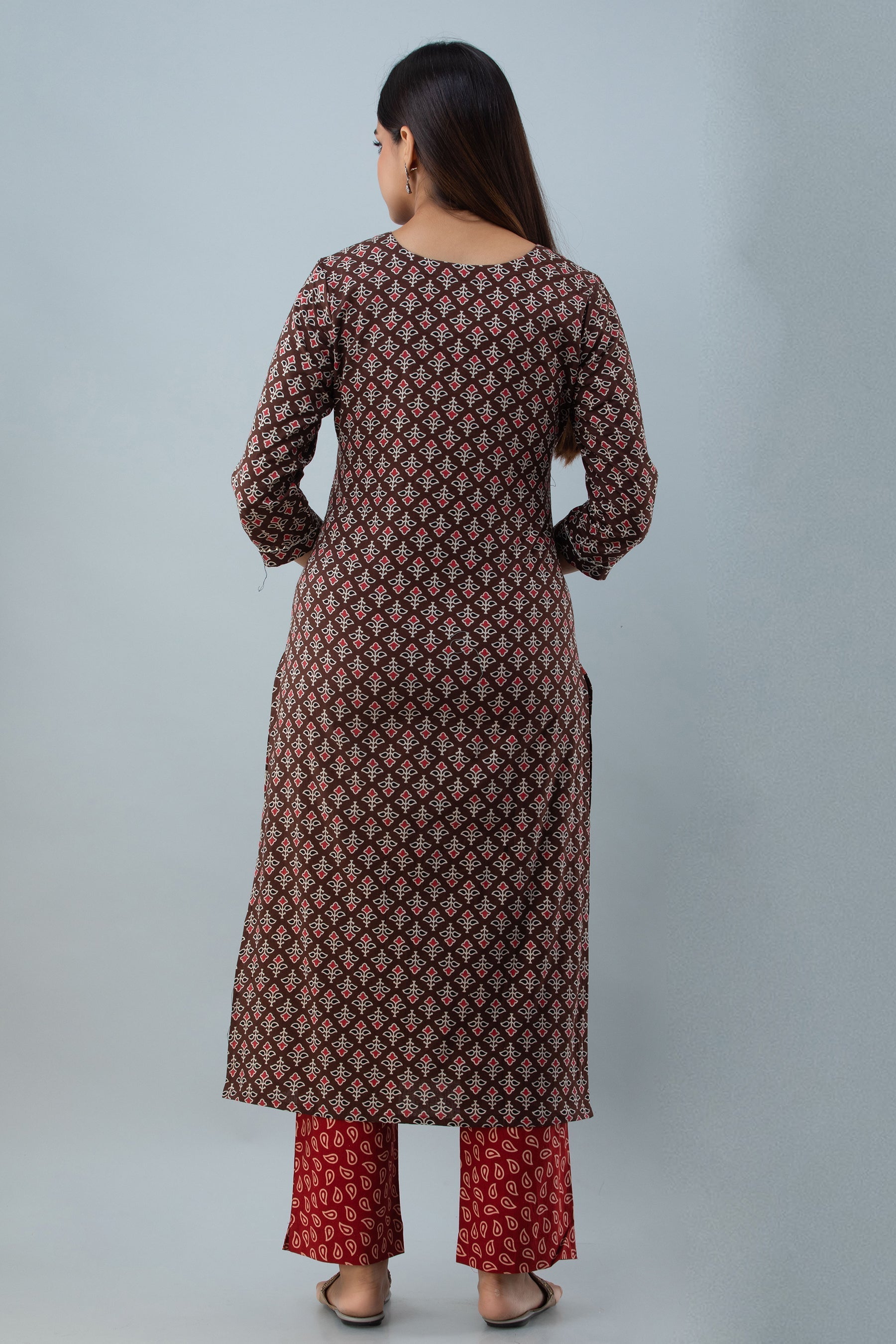 Cotton Calf Length Printed Straight 3/4 Sleeves Round Neck Kurta Set (Preorder)