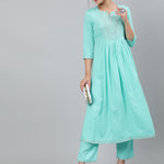 Rayon Sequence 3/4 Sleeve Flared Round Neck Calf Length Kurta Set (Preorder)
