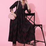 Rayon Calf Length Printed Semi-Flared 3/4 Sleeves V-Neck Kurta Bottom Set (Preorder)