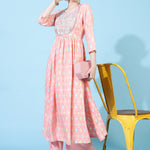 Rayon Calf Length Printed Flared 3/4 Sleeves Round Neck Kurta Bottom Set (Preorder)