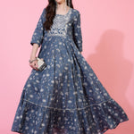 Cotton Ankle Length Printed Flared 3/4 Sleeves Round Neck Kurta Set (Preorder)