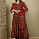 Calf Length Semi-Flared 3/4 Sleeves V Kurta Bottom Dupatta Set (Preorder)