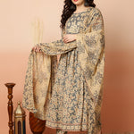 Calf Length Semi-Flared 3/4 Sleeves Round Kurta Bottom Dupatta Set (Preorder)