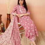 Calf Length Straight 3/4 Sleeves Round Kurta Bottom Dupatta Set (Preorder)