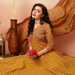Calf Length Flared 3/4 Sleeves V Kurta Bottom Dupatta Set (Preorder)