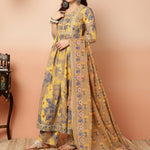 Calf Length Flared 3/4 Sleeves Round Kurta Bottom Dupatta Set (Preorder)