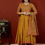 Calf Length Semi-Flared 3/4 Sleeves V Kurta Bottom Dupatta Set (Preorder)