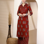 Cotton Calf Length Printed Straight 3/4 Sleeves Coller Kurta Bottom Set (Preorder)
