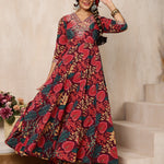 Cotton Calf Length Printed Flared 3/4 Sleeves V-Neck Kurta Bottom (Preorder)