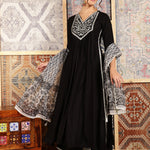 Rayon Calf Length Solid Flared 3/4 Sleeves V-Neck Kurta Bottom Dupatta Set (Preorder)